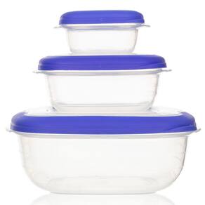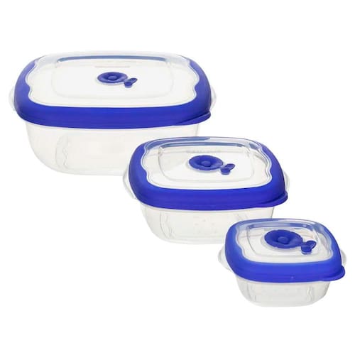 Conjunto de Potes Quadrados 3 Peças Sanremo em Polipropileno – Transparente/Azul