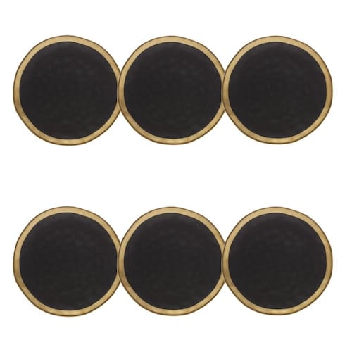 Conjunto de Pratos de Sobremesa 06 Peças Dubai Preto e Dourado 25,5cm Wolff - Incluso