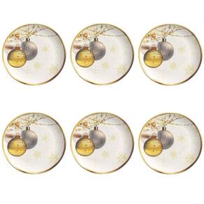 Conjunto de Pratos de Sobremesa 06 Peças Natal Noite Dourada Porto Brasil - Incluso