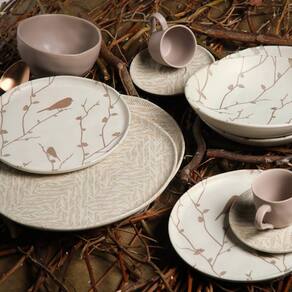 Conjunto de Pratos Fundos 06 Peças Bio Luar Porto BrasilA coleção Bio, feita em Cerâmica Stoneware, um material inovador e sustentável, onde a combinação das melhores matérias primas naturais, unido a um processo único de queima e acabamento manual, entregam um produto com características superiores em termos de qualidade e resistência. Podendo ser levados à geladeira, micro-ondas, lava-louças e forno convencional. A leveza das peças fica por conta dos tons claros e neutro já a delicadeza se da por conta da decoração dos passarinhos.