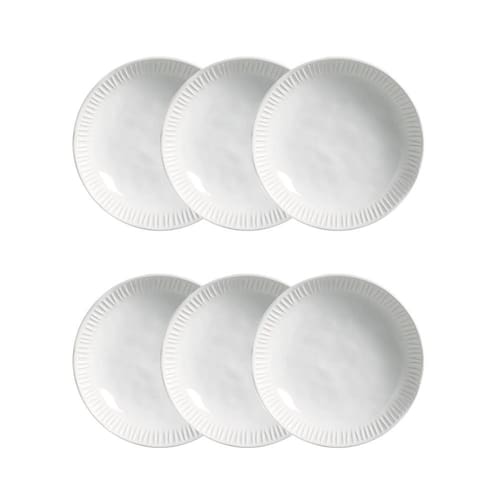 Material sustentável e durável O Conjunto de Pratos Fundos Porto Brasil Linhas New White 830ml - 6 Peças é fabricado em Stoneware, um material cerâmico inovador, sustentável e resistente. Combinando matérias-primas naturais e um processo exclusivo de queima e acabamento manual, o Stoneware entrega produtos de alta qualidade, com excelente durabilidade e resistência. Cada peça possui detalhes únicos, como variações de relevo e tons, que destacam sua autenticidade e originalidade, seguindo as principais normas internacionais de qualidade.