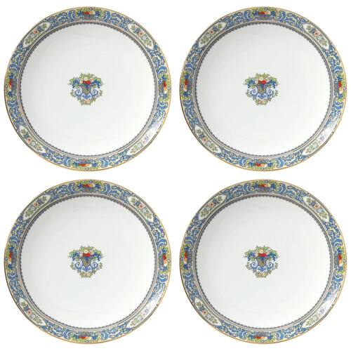 Um clássico de 1918 revive na nossa coleção imaculada Autumn White. Este sofisticado conjunto de 4 pratos de jantar apresenta o icônico design de cornucópia, agora em uma porcelana durável e lavável na máquina de lavar louça, com um formato cupê contemporâneo. Cada prato é adornado com brilhantes detalhes em ouro 24K, acrescentando um toque de luxo à sua mesa.