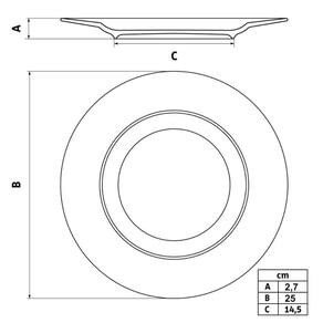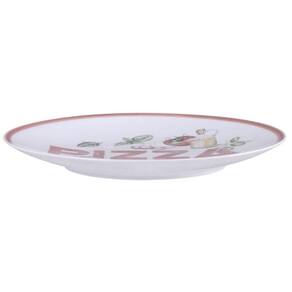 Garantia: 90 dias / Peso unitário: 535g / Cor predominante: vermelho / Ref.: 7794464795482; Dimensões: 25cm (D) x 2,7cm (A); Conteúdo: 6 pratos para pizza; Material: porcelana.