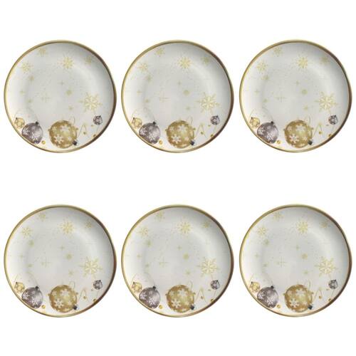 Conjunto de Pratos Rasos 06 Peças Natal Noite Dourada Porto Brasil - Incluso