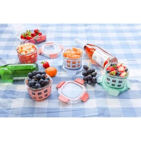 Ello Conjuntos de preparação de refeições de vidro Duraglass recipientes de armazenamento de alimentos de vidro à prova de vazamento com tampas de plástico herméticas livres de BPA, lava-louças, - Design de qualidade: o recipiente para alimentos Ello Duraglass com 2 xícaras vem com tampas de plástico sem BPA para manter os alimentos frescos por mais tempo. É perfeito para tigelas e sopas de iogurte em movimento, para citar alguns! - DURAGLASS: os recipientes Duraglass são feitos de vidro temperado de alta qualidade que resiste a manchas e odores. Esqueça de esfregar para se livrar de manchas e cheiros. - À prova de vazamento e hermético: tampas herméticas de encaixe travam para garantir que não haja derramamentos e manter os alimentos frescos por mais tempo. As tampas são livres de BPA e podem ser lavadas no freezer e na prateleira superior da lava-louças. - Fácil de usar: seguro para forno e micro-ondas sem tampa. Seguro para freezer. Todas as peças são seguras para lava-louças. Não é necessário remover as mangas. - PREPARAÇÃO DE REFEIÇÕES COM ESTILO: A capa de proteção de silicone extragrossa vem em uma variedade de cores para tornar a preparação de refeições divertida. Também protege contra lascas e quebras e pode ser lavado na lava-louças e no micro-ondas.