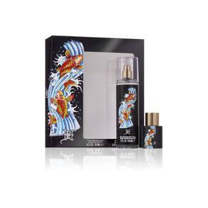 Conjunto de presente Ed Hardy Koi Wave Eau de Parfum Spray de 2 peças, fragrância unissex para homens e mulheres