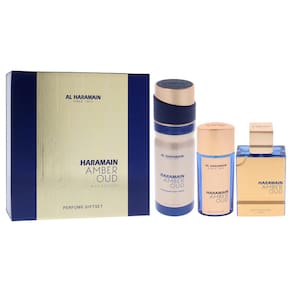 Al Haramain Amber Oud - Bleu Edition para unissex - Conjunto de presente de 3 peças de spray EDP de 2,5 onças, spray EDP de 1 onça, spray corporal de 6,6 onças