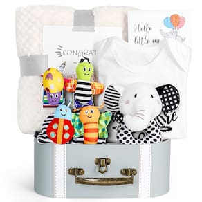-?CESTA DE PRESENTES PARA BEBÊS DE 0 A 6 MESES?Se você estiver dando um presente para a mãe de um novo bebê ou para seu próprio bebê, esses presentes farão com que todos sintam sua consideração e cuidado. Peça estes maravilhosos presentes neutros para a festa de chá de bebê de uma melhor amiga, revelação de gênero, primeira cesta de Natal para o bebê novo e primeira visita. Imagine você ou sua amiga recebendo esta caixa de presente para bebês cuidadosamente arrumada, cheia de amor e carinho, e tenha certeza de que ela vai adorar os presentes.