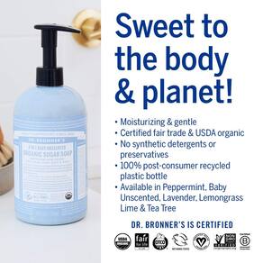 Dr. Bronner's Os sabonetes Baby Unscented Pure-Castile são suaves e suaves, especialmente formulados para a pele sensível do bebê! Completamente seguro e não tóxico, sem detergentes sintéticos ou conservantes — usamos os melhores ingredientes orgânicos! Perfeito para o corpo-cabelo-mãos-pés do bebê. Como todos os sabonetes verdadeiros, nossos sabonetes de castela pura sem perfume para bebês não são livres de rasgos, então mantenha fora dos olhos! Dilua para lavar toda a casa e lavar roupas — crie um ambiente livre de tóxicos para o seu bebê! Este conjunto de presente para bebês inclui: Sabonete de açúcar orgânico (680 g), bálsamo mágico orgânico (59 ml), sabonete líquido de castela pura (227 g) e sabonete em barra (142 g). O sabonete mais suave para o bebê, você e a mãe Terra! Tudo em um! - ESTE CONJUNTO DE PRESENTE INCLUI: Os produtos sem perfume Dr. Bronner's Baby são para bebês e pele sensível. O conjunto de presente inclui: Sabonete de açúcar orgânico (680 g), bálsamo mágico orgânico (59 ml), sabonete líquido de castela pura (227 g) e sabonete em barra (142 g). - Bom para o seu corpo e para o planeta: os sabonetes líquidos Dr. Bronner's são totalmente biodegradáveis e usam ingredientes veganos naturais que não representam ameaça ao meio ambiente. Nossos produtos e ingredientes nunca são testados em animais e são livres de crueldade. - SEM CONSERVANTES SINTÉTICOS, DETERGENTES OU AGENTES DE ESPUMA - Nosso sabonete em barra de castela pura é feito com ingredientes vegetais que você pode pronunciar — sem conservantes sintéticos, espessantes ou agentes espumantes — bom para o meio ambiente e ótimo para sua pele! - Nosso protetor labial é livre de crueldade e nunca testado em animais: os produtos e ingredientes da Dr. Bronner's nunca são testados em animais, então eles se qualificam para o logotipo do Leaping Bunny. Finalmente, um protetor labial que você pode obter totalmente! - Aromas celestiais: óleos essenciais puros e açúcar orgânico criam um aroma delicioso. Uma adição elegante ao seu banheiro e cozinha — Sabonetes de açúcar orgânicos são bons para lavar as mãos, rosto, corpo e cabelo! Siga com enxágue de cabelo cítrico para cabelos sedosos e suaves.