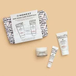 Conjunto de presentes The Honest Company New Mama Care Essentials | Bolsa hospitalar indispensável | Nip Balm tamanho de viagem (0,5 onça), creme corporal Glow On (1 onça), sabonete facial Gotta Glow (1,75 fl oz), bolsa reutilizável — itens essenciais
