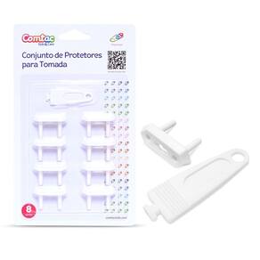 O Conjunto de Protetores para Tomada da Comtac Kids & Care oferece segurança às crianças, evitando choques elétricos acidentais ao colocarem os dedinhos ou algum objeto pontiagudo na tomada. Os protetores acompanham uma chave para retirá-los de forma simples e rápida. CARACTERÍSTICAS- Evita que as crianças insiram objetos pontiagudos no plug da tomada;- Difícil de ser removido sem o uso da chave que acompanha o produto;- Cor branca, para que não chame atenção e não interfira na decoração da casa. COMPOSIÇÃO/MATERIAL- ABS. DIMENSÕES DO PRODUTO (LxAxP)- 3,4 x 1,4 x 2,3 cm. DIMENSÕES (EMBALAGEM COM O PRODUTO) (LxAxP)- 12,5 x 20,5 x 1,5 cm. PESO (EMBALAGEM COM O PRODUTO)- 34 g. MODELO DA EMBALAGEM- Cartela blister. A EMBALAGEM CONTÉM- 8 Protetores de tomada;- 1 Chave.