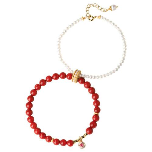 Tamanho: Diâmetro do cordão 6 mm, perímetro 16 cm Material: combinação de pulseiras duplas de ágata vermelha do sul — Inclui duas pulseiras: uma com contas de ágata vermelha do sul polidas e outra com elegantes pérolas artificiais, criando um estilo rico em camadas. Ágata vermelha natural do sul — apresenta contas redondas de ágata vermelha de 6 mm, conhecidas por sua cor ousada e simbolismo cultural de força e fortuna. Design chique de cordão de pérola — O fio secundário é feito com delicadas imitações de pérolas e uma corrente dourada com um fecho ajustável para um ajuste personalizável. Detalhes dourados e charmosos — embelezados com espaçadores dourados cintilantes e um pingente de cristal suspenso que adiciona um toque moderno e refinado. Perfeito para o estilo do dia a dia — Adequado para uso casual, roupas de escritório ou combinação com looks noturnos elegantes para aprimorar seu jogo de acessórios.