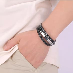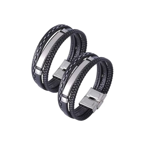 Pulseras Hombre Brazalete Pulseiras de Couro Masculinas Pulseiras de Couro. Uma ótima alternativa para combinar com outros acessórios, como relógios ou outros pulseiras, refletindo na roupa um toque único de estilo.. Por estas três razões, os braceletes ou pulseiras feitos com couro foram convertidos em complementos indispensáveis.. Tendência, versatilidade e personalidade.. pulseiras com uma variedade de texturas.. Combinação de cor preta, ideal para combinar.Especificações:. Material: Couro. Cor: café e preto. Diâmetro: 17 - 20cmConteúdo do pacote 2 x Pulsera de Cuero Pulseras para Parejas Pulseras Mujer Brazalete Vikingo