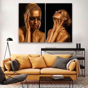Conjunto De Quadros Dupla Mulheres Douradas Conjunto de Quadros Dupla Mulheres Douradas G (118 x 78) - Qualidade Premium (padrão museu)