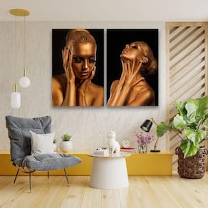 Conjunto De Quadros Dupla Mulheres Douradas Conjunto de Quadros Dupla Mulheres Douradas GG (150 x 100) - Qualidade Premium (padrão museu)