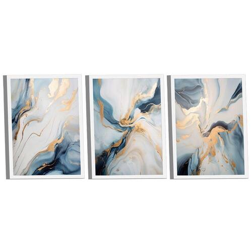 Conjunto De Quadros Trio Abstract Blue Gold -- Br Artes Conjunto de Quadros Trio Abstract Blue Gold -- BR ARTES Moldura Branca - Gigante 180x105 - - Qualidade Premium (padrão museu)