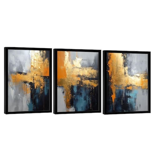 Conjunto De Quadros Trio Abstrato Mancha Dourada -- Br Artes