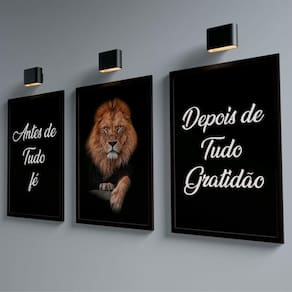 Acompanha o produto: - Conjunto de Quadros Trio Fé e Gratidão Garantia: - 90 Dias