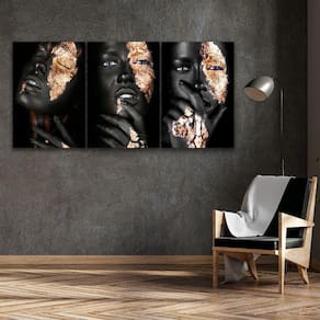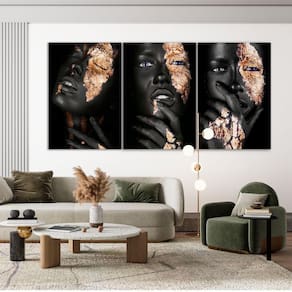 Conjunto De Quadros Trio Negras Douradas Conjunto de Quadros Trio Negras Douradas G 234X118 - Qualidade Premium (padrão museu)