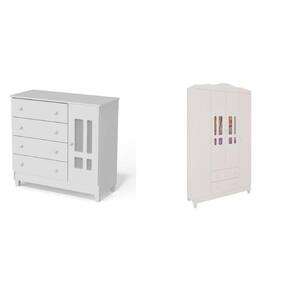 1x Guarda-Roupa de Bebê 4 Portas 2 Gavetas Ariel Branco Largura: 124,6 cm Altura: 198 cm Peso: 59,8 kg Profundidade: 39 cm Necessita Montagem: Sim