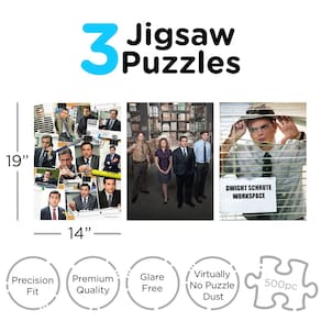 Conjunto Aquarius de 3 quebra-cabeças The Office (três quebra-cabeças de 500 peças) — Sem brilho — Ajuste preciso — Mercadorias e itens colecionáveis oficialmente licenciados pelo The Office — 14 x 19 polegadas