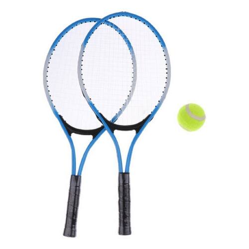 Ótimo presente para seus filhos melhorarem suas habilidades no tênis. Características Este conjunto de tênis inclui duas peças de raquetes de tênis, uma bola de tênis e uma bolsa transparente. Material: liga de ferro\ nCor: vermelho e azul\ nTamanho: 52 cm * 22 cm * 8 polegadas Peso: 205 gr\ nDiâmetro da bola: 6,1 cm/2,4 polegadas\ nPeso da bola: 61 gr\ nTamanho da embalagem: 54 cm * 23 cm * 3 cm\ nPeso da embalagem: 586 grCor\ nAzul