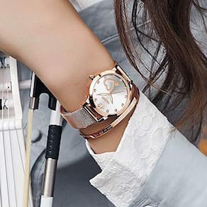 OLEVS Senhoras Relógios Rosa Ouro Aço Inoxidável Malha Correia Moda Vestido Japonês Quartzo Impermeável Luminosa Amor Pulseira Conjuntos