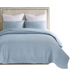 Conjunto de colchas queen size Benjara Fys de 3 peças, jacquard de tecido macio, azul chambray — O conjunto de colchas de