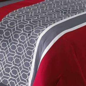 Conjunto de edredom king size Benjara de 8 peças com padrão de treliça estampado, vermelho