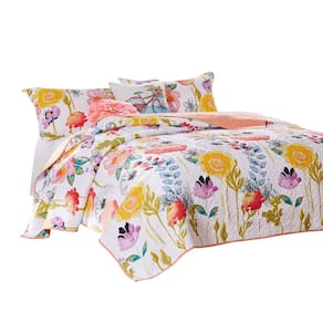 Conjunto de edredões duplos reversíveis Benjara Mavi de 4 peças, estampa floral de primavera, multicolorido
