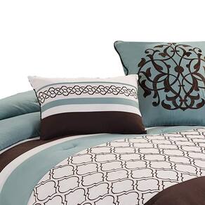 Conjunto de edredom de tecido Benjara Quatrefoil King Size de 8 peças, marrom e azul