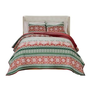 Conjunto de colchas Full/Queen Benjara Reindeer, dorso de veludo holandês, Natal, vermelho, verde, branco e cáqui