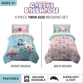Conjunto de roupa de cama infantil DreamWorks Gabby's Dollhouse Cakey, MerCat And Pandy, edredom e lençóis supermacios, 4 peças de solteiro, da Franco