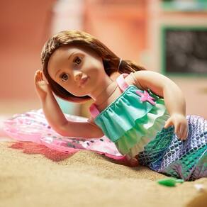 Mergulhe no mundo da fantasia com o Conjunto de Roupa de Sereia Our Generation, especialmente desenvolvido para bonecas de 46 cm. Este conjunto encantador transforma qualquer boneca em uma sereia deslumbrante, com uma cauda brilhante que imita as escamas cintilantes do mar, combinada com um top de maiô delicado e com babados que trazem ainda mais charme ao visual. Completo com acessórios temáticos, como um enfeite de estrela-do-mar para o cabelo que adere facilmente, um castelo de areia detalhado, pá e ancinho para a praia, além de uma boia inflável em formato de concha com glitter que garante horas de diversão imaginativa.