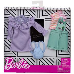 Roupas da Barbie — 2 roupas de boneca em tons pastéis, como um macacão verde claro com estampas fofas e mochila rosa, presente para crianças de 3 a 8 anos — Com roupas e acessórios de boneca Barbie para 2 looks completos neste pacote de moda de inspiração pastel, a imaginação tem o dobro de inspiração para explorar histórias e estilos! - O vestido geral verde pastel é super fofo com estampas de decalque, como “dreamer”, e está na moda com uma camisa listrada com cores pastel em rosa e laranja. - O segundo look é um vestido roxo pastel feito de sonho com babados nas mangas e no pescoço e bolinhas no tratamento transparente dos ombros. - Óculos de sol retrô e uma mochila rosa claro completam os looks. - Misture e combine com outras roupas e acessórios da boneca Barbie para despertar a imaginação e a diversão de contar histórias (cada uma vendida separadamente, sujeita à disponibilidade). - Mais variedade torna a coleção de bonecas e roupas da Barbie ainda mais divertida - colecione todas elas!