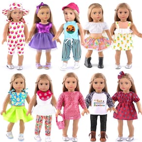 10 conjuntos de roupas e acessórios de boneca ebuddy para boneca feminina de 18 polegadas