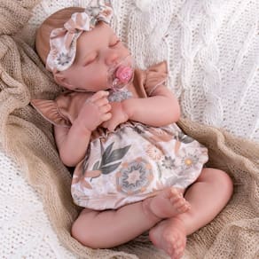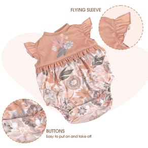 Aori Acessórios de roupas para bonecas Reborn - Serve para bonecas de bebê renascidas - os acessórios de roupas são perfeitos para bonecas recém-nascidas. Bonecas de bebê reborn DIY de maneira fácil. - Conteúdo da embalagem: 1 macacão floral, 1 faixa de cabeça combinando. - Qualidade premium: as roupas da boneca Reborn são elásticas, projetadas para serem difíceis de colocar e tirar. Você pode lavá-las à mão ou em uma máquina de lavar. - Presente com amor - o conjunto de fantasia traz mais amor e diversão aos seus filhos. Presente de aniversário, coleções de Natal, ótimo presente para sua menina. - Materiais seguros: acessórios de roupas de boneca de alta qualidade, conjunto de roupas de boneca reborn feito à mão, 100% seguro para o seu bebê. - Adequado para bonecas Reborn de 43 a 50 cm - A boneca não está incluída.