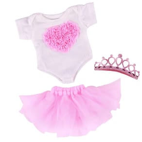 BABESIDE Conjunto de 3 peças de roupas e acessórios de boneca Reborn para bonecas Reborn de 12 a 35 a 40 cm e meninas de 45,7 cm, pacote inclui: 1 faixa de cabeça de coroa de boneca, 1 macacão de roupas de boneca, 1 saia de boneca, 1 saia de boneca, - Tamanho das roupas da boneca: o conjunto de 3 peças de roupas de boneca está disponível em vários tamanhos para caber em bonecas de 45 cm e meninas realistas de 12 a 35 a 40 cm. - Incluído na embalagem: o conjunto de roupas de boneca vem com 1 macacão de roupa de boneca, 1 faixa de cabeça de coroa de boneca e 1 saia curta de boneca, um total de 3 acessórios de boneca. - Material seguro: estes acessórios de roupas para bonecas são feitos de fibras de alta qualidade, textura confortável, e os acessórios para bonecas podem ser lavados na máquina ou lavados à mão e reutilizados. - O conjunto de roupas de bonecas vem em um lindo pacote e acessórios para bonecas para cuidar bem de bonecas de 45,7 cm ou bonecas de silicone de 12-14-16, o que o torna um acessório ideal para roupas de bonecas pequenas. - Atenção: a boneca não está incluída, apenas 3 peças de roupas e acessórios para bonecas.