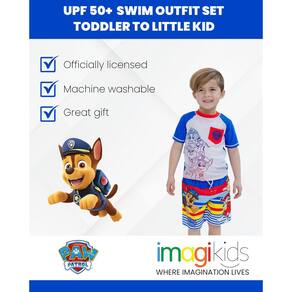 - Blusa de natação de manga curta para meninos oficialmente licenciada pela Paw Patrol e calça de banho fofa e estilosa