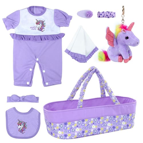 roupas para bonecas —?O pacote inclui?Nosso conjunto de 7 peças de roupas para bonecas renascidas vem com 1 faixa de cabeça, 1 babador, 1 envoltório, 1 roupa de boneca, 2 grampos de cabelo, 1 brinquedo de pelúcia e 1 berço de boneca com um total de 7 acessórios que podem aprimorar a experiência de brincar para crianças. -?BERÇO DE BONECAS?Berço acessório de roupas para bonecas que é fácil de transportar, durável e tem um grande espaço, que pode acomodar bonecas e acessórios de vestuário, facilitando a brincadeira das crianças em qualquer lugar. -?MATERIAL DE SEGURANÇA?Tecidos de alta qualidade, textura confortável, as crianças podem brincar com segurança. Ao mesmo tempo, os acessórios para bonecas podem ser lavados à máquina ou à mão diretamente para continuar em uso. -?PRESENTE PERFEITO?Nosso conjunto de roupas para bonecas vem em um pacote fofo e acessórios completos para cuidar bem de bonecas de 17 a 22 polegadas e bonecas renascidas, tornando-o um presente ideal para aniversários, feriados ou outras ocasiões especiais. -?ATENÇÃO?A boneca não está incluída no pacote, somente roupas.