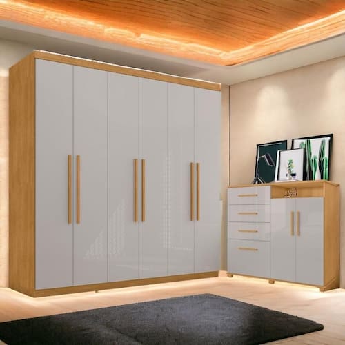 O conjunto de Guarda roupa e Cômoda é perfeito para você que procura sofisticação e e praticidade na hora da organização