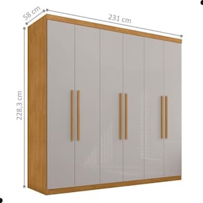 O guarda roupa é feito em MDF 4 gavetas com corrediças telescópicas, 6 Portas , 7 prateleiras e 5 cabideiro.