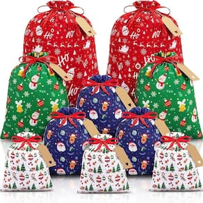 Material: tecido tricotado Tamanhos: pequeno 10* 15 cm, peso: 10 g; grande 50* 40 cm, peso: 30 g; quantidade: 10 unidades; cores: Random MixFestive Holiday Patterns: cada sacola de presente apresenta estampas alegres com temas natalinos, como Papai Noel, bonecos de neve, renas, árvores e ornamentos, criando uma atmosfera sazonal alegre para celebrações e festas de inverno. Material de tecido macio: Feitas de tecido de malha leve, essas bolsas com cordão são macias ao toque, são duráveis para uso repetido e adequadas para guardar guloseimas, itens pequenos ou decorações natalinas. Dois tamanhos práticos incluídos: o conjunto contém sacolas pequenas e grandes com cordão, facilitando a organização de diferentes itens, como doces, maçãs, lanches ou decorações de mesa, com uma aparência coordenada. Fecho fácil com cordão: projetada com uma abertura suave com cordão, cada bolsa permite uma abertura rápida e um fechamento seguro, mantendo o conteúdo bem armazenado e adicionando um acabamento decorativo. Uso sazonal versátil: ideal para festas de Natal, eventos de inverno, atividades em sala de aula, armazenamento de decoração ou exibições natalinas, este conjunto de sacolas de presente adiciona charme e conveniência aos preparativos sazonais.