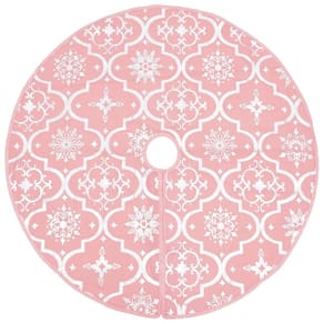 Esta elegante saia de árvore de Natal combina elegância com praticidade, feita de poliéster de toque suave que realmente realça sua decoração natalina. O lindo tecido rosa com padrão de neve não apenas ilumina sua árvore, mas também esconde o suporte, dando uma aparência suave e acabada à sua sala de