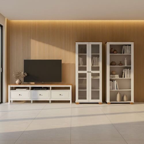 Itens Inclusos: 3 Largura do Conjunto: 180 cm Linha ou Cole??o: Sim Manual de Especifica??o T?cnica: Ananda Manual de Montagem e Instala??o: Nacional Marca: CabeCasa MadeiraMadeira Material Principal: MDF Necessita Montagem: 1 Rack, 1 Cristaleira, 1 Estante, Manual de Montagem e Kit Ferragens Origem do Produto: Sala de Estar Possui Rod?zio: N?o Profundidade do Conjunto: 41.2 Sistema de Montagem: Parafusos, Cavilhas, Minifix, Corredi?a e Trap?zio.