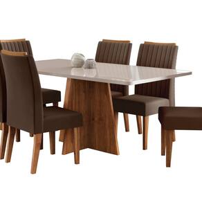 Renove sua sala de jantar com este conjunto que une elegância e conforto em cada detalhe. A mesa possui 160x80cm, com tampo em MDF de 1,8cm e vidro sobreposto, que garante sofisticação e fácil limpeza. A base em formato “X”, feita em MDP, oferece estabilidade e um toque moderno ao ambiente. As cadeiras completam o conjunto com estrutura em MDP/MDF, que alia resistência e durabilidade. Revestidas em tecido veludo, elas trazem um acabamento refinado e confortável ao toque. Perfeito para quem busca um ambiente acolhedor e cheio de estilo. Ideal para receber amigos e familiares com charme. Um conjunto que valoriza sua decoração e seus momentos. Funcionalidade, beleza e qualidade em um só produto. Seu lar merece esse cuidado! Medida da Mesa (A x L x P): A:77,8 x L:160 x P:80cm Peso da Mesa: 44,3 kg Mesa suporta até: 50 kg Acabamento da Cadeira/Banco: Pintura UV Acabamento da Mesa: Pintura UV Acompanha Manual de Instalação: Sim Ambiente Principal: Sala de Jantar Cadeira/Banco Estofada: Encosto e Assento Estofados Cadeira/Banco estofada: Encosto e Assento Estofados Cadeira/Banco suporta até: 90 kg codigo_ean: 7900288196750 Complexidade da Montagem: Média: pode ser montado por mais de uma pessoa e/ou necessite de maior conhecimento para montagem Configuração do Conjunto: Mesa com Cadeiras Cor: Mel / Off White / Marrom Cor das Cadeiras: Marrom Cor do Produto: Mel / Off White / Marrom Cor Secundária: Bege De Canto (Canto Alemão): Não Enchimento do Assento: Espuma D-26 Escala de Brilho: Semi-Brilho Espessura do Tampo: 18 mm Estrutura do Assento: MDP Estrutura do Encosto: MDP Formato do Tampo: Retangular Informações Complementares: Sala de Jantar 6 lugares Itens Inclusos: 1 Mesa, 6 Cadeiras, Kit Ferragens e Manual de Montagem Largura do Conjunto: 160 cm Linha ou Coleção: Tannat Manual de Montagem e Instalação: https://product-hub-prd.madeiramadeira.com.br/313487763/documents/36fcb644-db84-47e0-805c-cc70bb35e3f730362915281751381818009.pdf Marca: Viero Material da Base da Mesa: MDP Material da Estrutura da Cadeira: MDF/MDP Material do Tampo: Vidro/MDF Material Principal: MDF/MDP Material Principal das Cadeiras/Bancos: MDF/MDP Medida da Cadeira/Banco (A x L x P): A:101 x L:42 x P:58,5cm Medida do Tampo (L x C x E): L:160 x C:80 x E:1,8cm Mesa Extensível: Não Necessita Montagem: Sim Origem do Produto: Nacional Peso da Cadeira/Banco: 8 kg Possui Apoio Para os Pés: Não Possui Vidro: Sim Profundidade do Conjunto: 80 cm Quantidade de Cadeiras: 6 Quantidade de Lugares: 06 Recomendações de Uso, Manutenção e Limpeza: limpar com pano levemente umedecido em água Revestimento da Cadeira/Banco: Veludo Sistema de Montagem: Parafusos, cavilhas