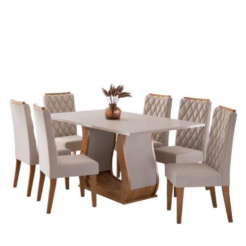 MODELO: Conjunto de Sala de Jantar Mesa Veneto 1,60m 6 Cadeiras Bele Veludo