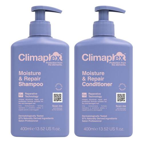 Conjunto de shampoo e condicionador Climaplex Moisture and Repair — Acalma e purifica o couro cabeludo — Desembaraça os nós — Fórmula não oleosa — Todos os tipos de cabelo — 2 peças — HIDRATA E REPARA O CABELO. Ótimo para uso diário, enxaguando sujeira, óleo e produtos do cabelo. Nossa fórmula é como uma desintoxicação para seu cabelo e couro cabeludo. Ele limpa profundamente para remover o acúmulo, deixando você com uma ficha nova e limpa.