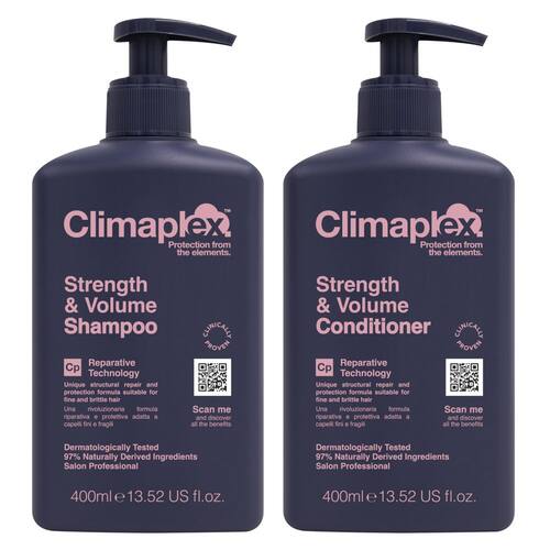 Conjunto de shampoo e condicionador Climaplex Strength and Volume — Hidrata e protege — Desembaraça os nós — Adiciona corpo e brilho — Todos os tipos de cabelo — 2 peças — MELHORA O BRILHO E O VOLUME. Dê ao seu cabelo um brilho brilhante e sedoso com maior capacidade de gerenciamento para resultados brilhantes e perfeitos. Este shampoo e condicionador funcionam com seu cabelo para realçar sua beleza natural, melhorar a saúde geral e melhorar o crescimento do cabelo.