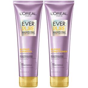 Shampoo e condicionador L'Oreal Paris Blonde sem sulfato para cabelos tingidos, neutraliza o latão e equilibra, EverPure, 8,5 fl oz, conjunto de 2